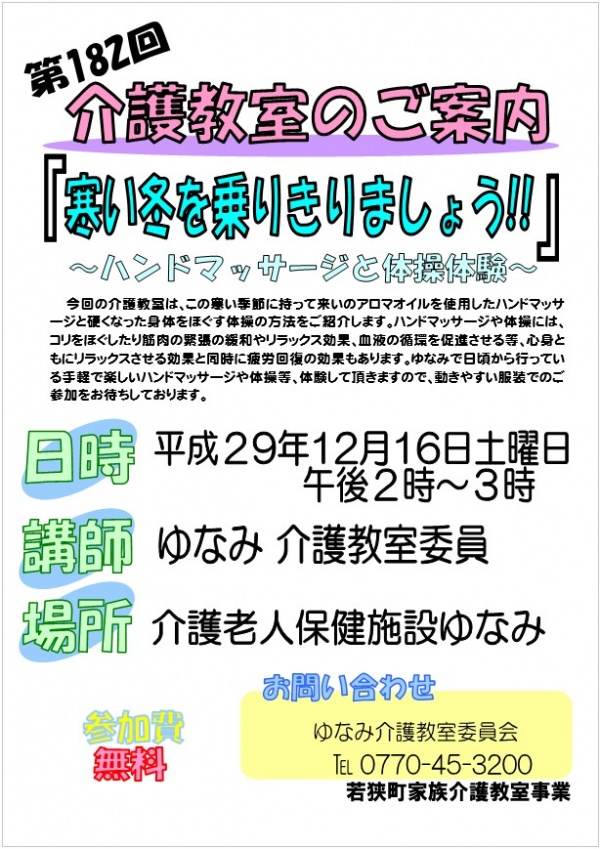 第182回 介護教室のお知らせ