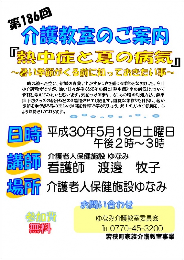 第186回 介護教室のお知らせ