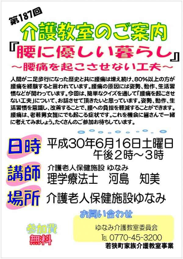 第187回 介護教室のお知らせ