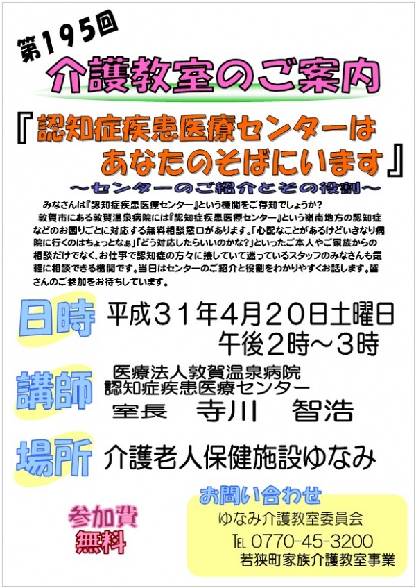 第195回 介護教室のお知らせ